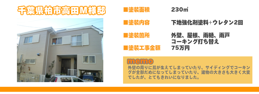 柏、松戸、流山、我孫子、野田、鎌ヶ谷、市川、白井などの塗装工事掲載中です!