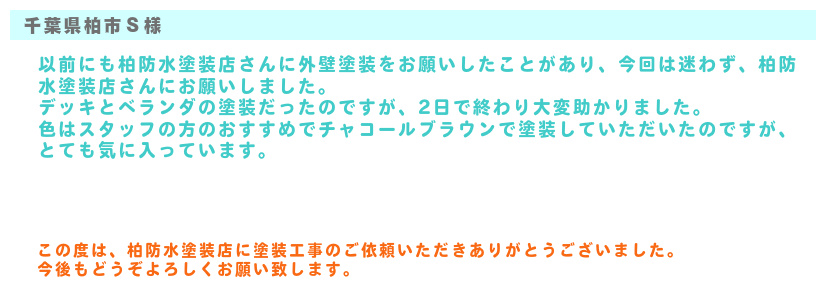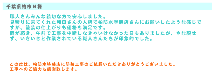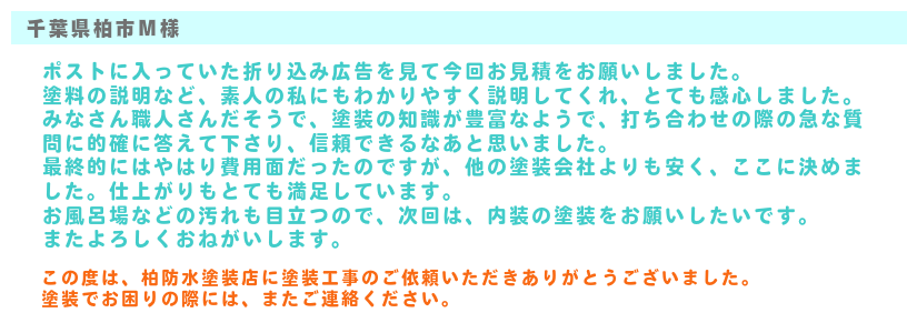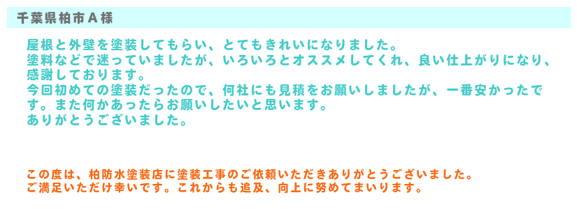 柏防水塗装店のお客様の声